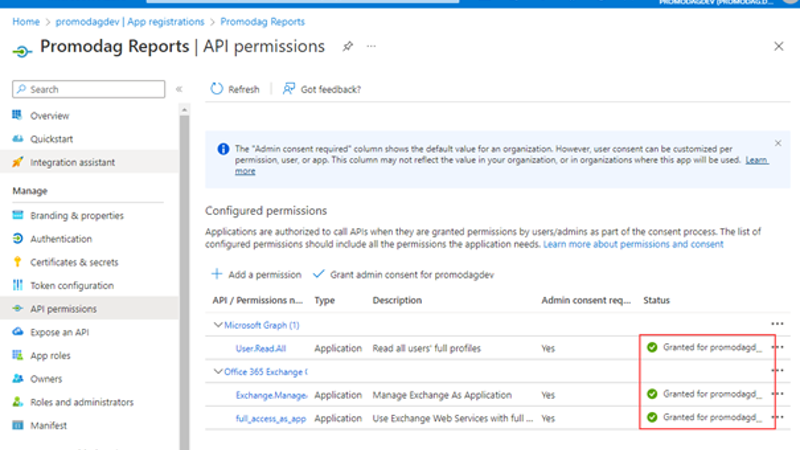 For your convenience, Promodag provides a PowerShell script to automatically create this Promodag Reports RBAC Application that you can authorize to access your tenant along with the corresponding certificate. However, it is possible that your company's security policy requires you to create a custom application and certificate yourself.