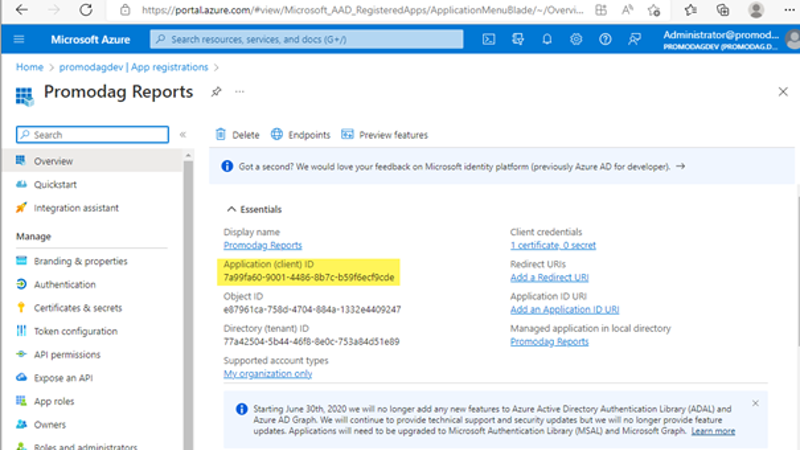 Step 6: Retrieve the Promodag Reports Microsoft Entra ID application identifiers