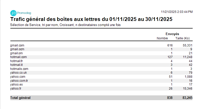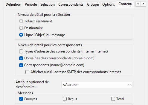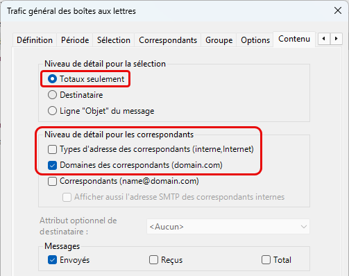 Pour un aperçu, sélectionnez uniquement Totaux et Domaines des correspondants (domaine.com).