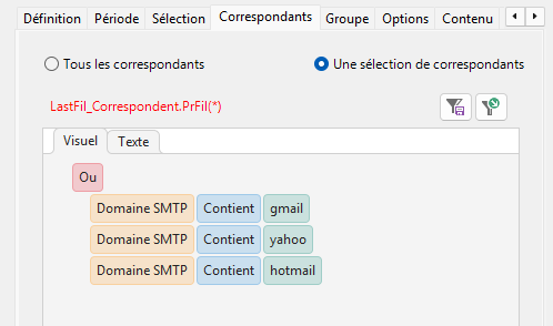 - Un onglet Correspondants pour sélectionner leurs correspondants,