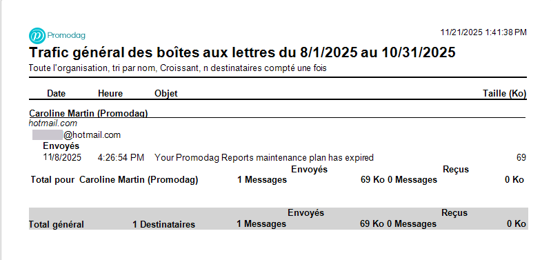 Parmi tous les destinataires d'e-mails définis dans notre annuaire, vérifions le trafic des boîtes aux lettres appartenant à nos services Ventes et Support.