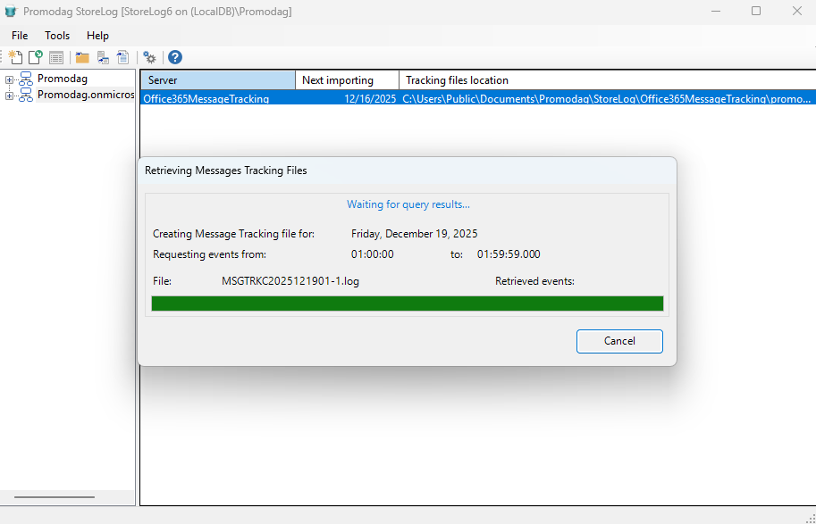 - Stocke ces fichiers en local dans : C:Users\Public\Documents\Promodag\Storelog\6\Office365MessageTracking<Organisation>