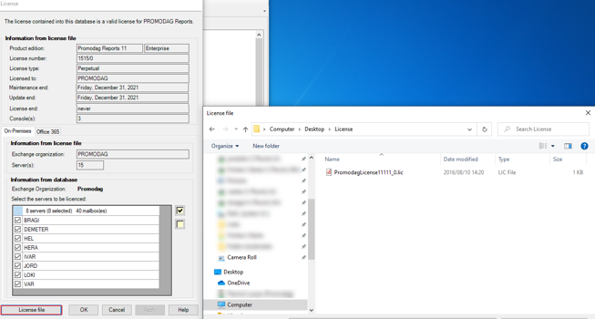 - When prompted for the license file, select the PromodagLicenseXXXX_n.lic file from your Desktop and click Open;