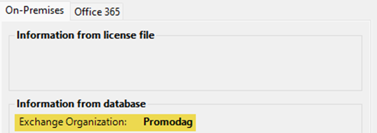 We need the exact name of your Exchange organization to be able to generate a valid license file for you.