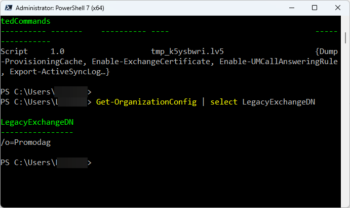 Get-OrganizationConfig | select LegacyExchangeDN