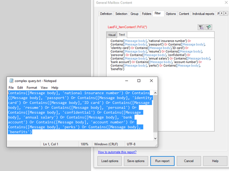 Let's say you've received a request from your manager to retrieve a list of all Outlook items containing personal data in the mailboxes of people who are about to leave. He gives you a list of 20 keywords to search for: passport, ID card, social security number, resume, etc.